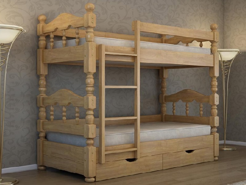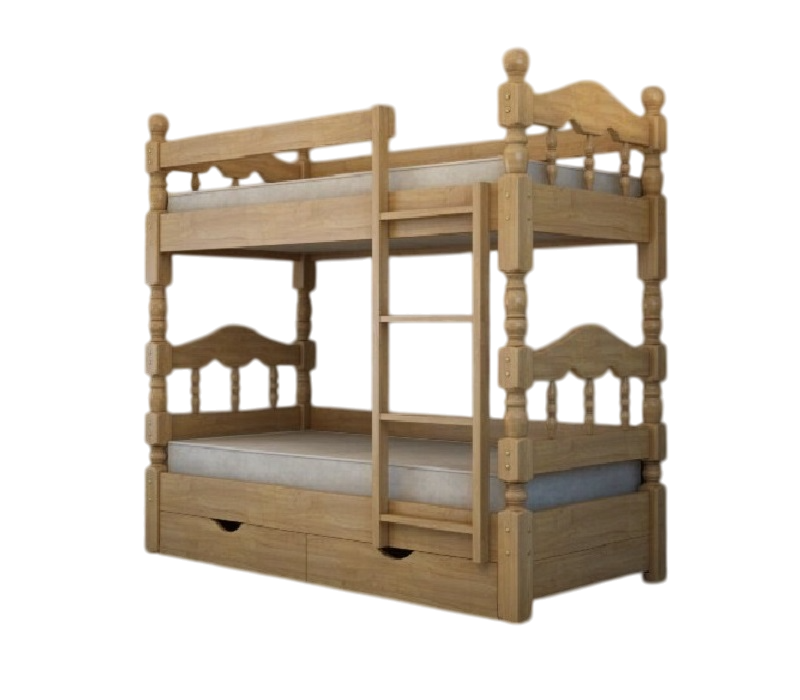 - Универсальность. Деревянные двухъярусные кровати универсальны тем что, для каждой модели возможно изготовление нижних ящиков для белья или игрушек, встроенной лестницы.