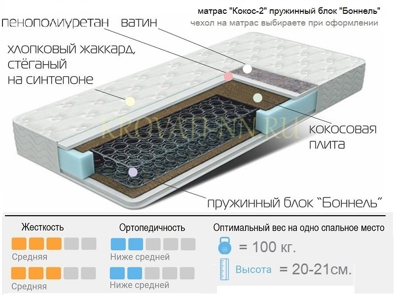 - Матрас на основе пружинного блока "Боннель"