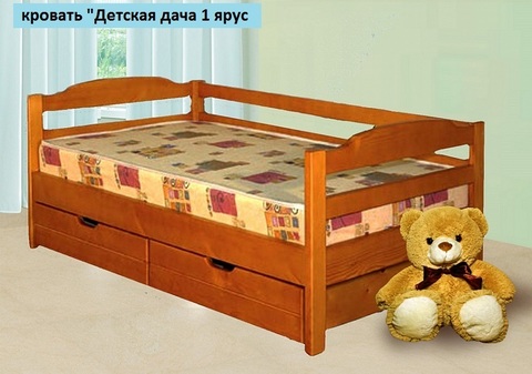 90х190 / Лак / Дача 1 ярус / кровать с ящиками / ламели