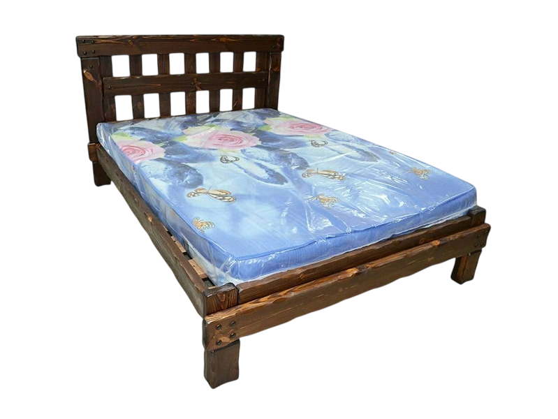 Кровать изготовлена с эфектом старения (бранширование, массив сосны)