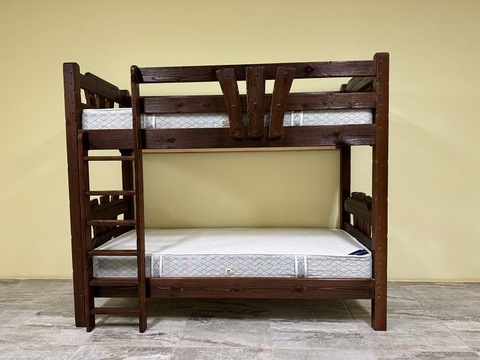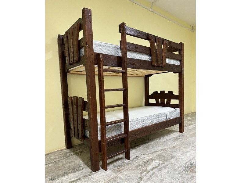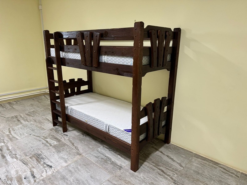Кровать двухъярусная изготовлена с эффектом старения (бланширование, массив сосны)