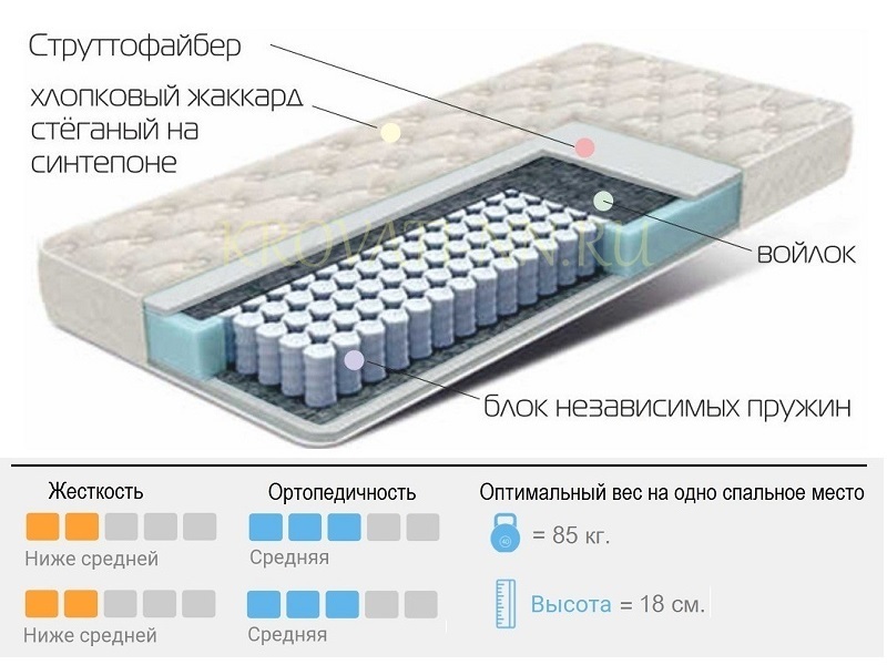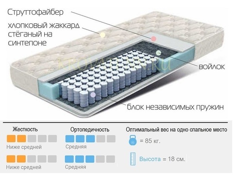 Жесткость: ниже средней; (80кг) Высота: 18см.