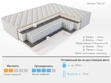 Основа матраса - независимый пружинный блок(мультипакет). Изолирующая прослойка между пружинным блоком и мягким наполнителем – термовойлок. В качестве мягкого наполнителя используется плита натурального латекса ( 2см), он идеально повторяет контуры человеческого тела, поглощает вибрации от движения, обеспечивая максимальный комфорт. При этом он имеет высокие восстанавливающие свойства, моментально принимая первоначальную форму. Открытая сотовая структура в сочетании с системой отверстий позволяет матрасу дышать, тем самым уменьшая накопление тепла. В качестве обивочного материала используется светлый хлопковый жаккард, простёганный на холлофайбере. Матрас средней жёсткости, обеспечивает здоровый сон. Высота матраса 19 см. Максимальный вес на спальное место 100 кг.