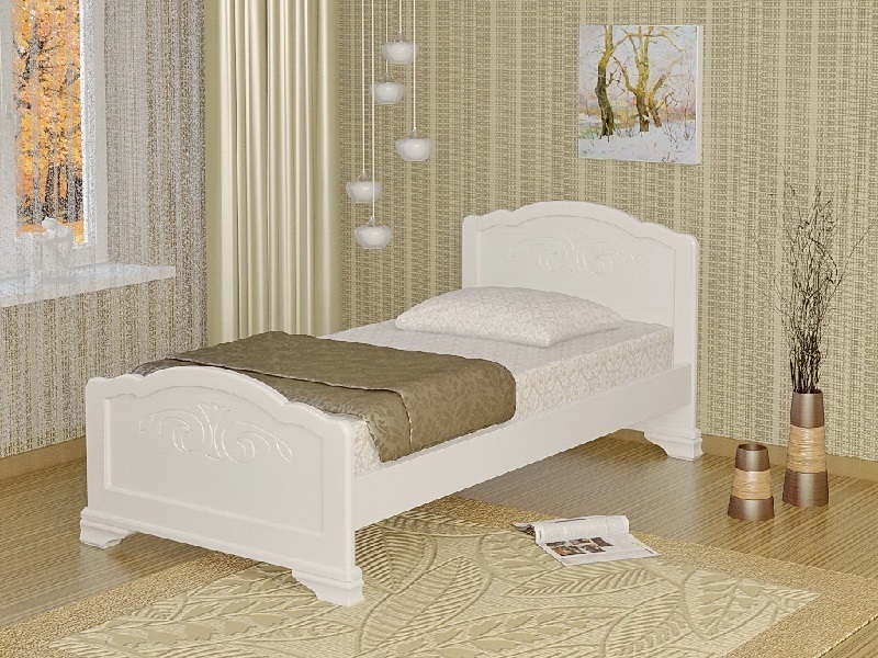 Кровать изготовлена из массива сосны.